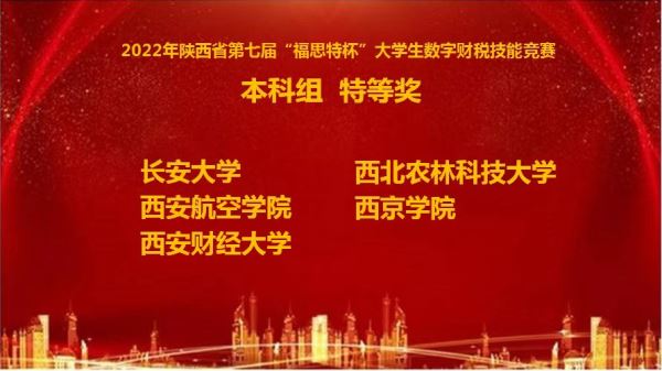 近日,我校会计学专业学子在“2022年陕西省第七届‘福斯特杯’大学生财税技能竞赛”和“中西部高等院校会计大数据分析邀请赛”两项比赛中荣获特等奖、一等奖和二等奖!展现了我校学子扎实的专业知识、过硬的财税岗位技术和良好的团队协作能力,预示我校人才培养模式改革取得一定成效。具体获奖情况如下: