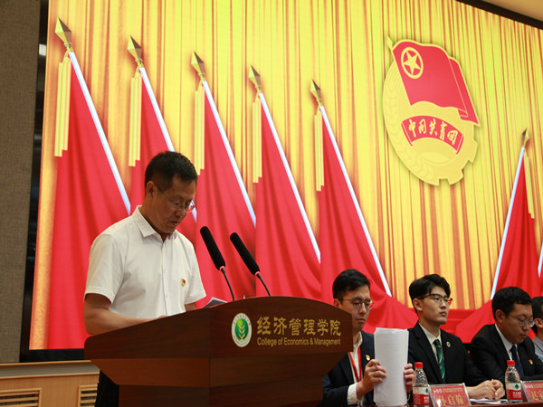 大会在庄严的国歌声中开幕。校团委副书记胡代欣、校学生会执行主席韩煦、校研究生会执行主席赵家豪分别代表校团委、校学生会和校研究生会致辞。学院党委副书记张军驰宣读学院党委贺信。学院团委书记张静代表学院第一届团委作题为《牢记历史使命 坚定理想信念 为开创学院共青团工作新局面贡献青春力量》的报告,全面总结回顾了学院共青团过去五年的主要工作,确定了未来的工作方向和奋斗目标。学院学生会执行主席魏敬力和研究生会执行主席王树森分别代表学院上一届学生会和研究生会作报告。