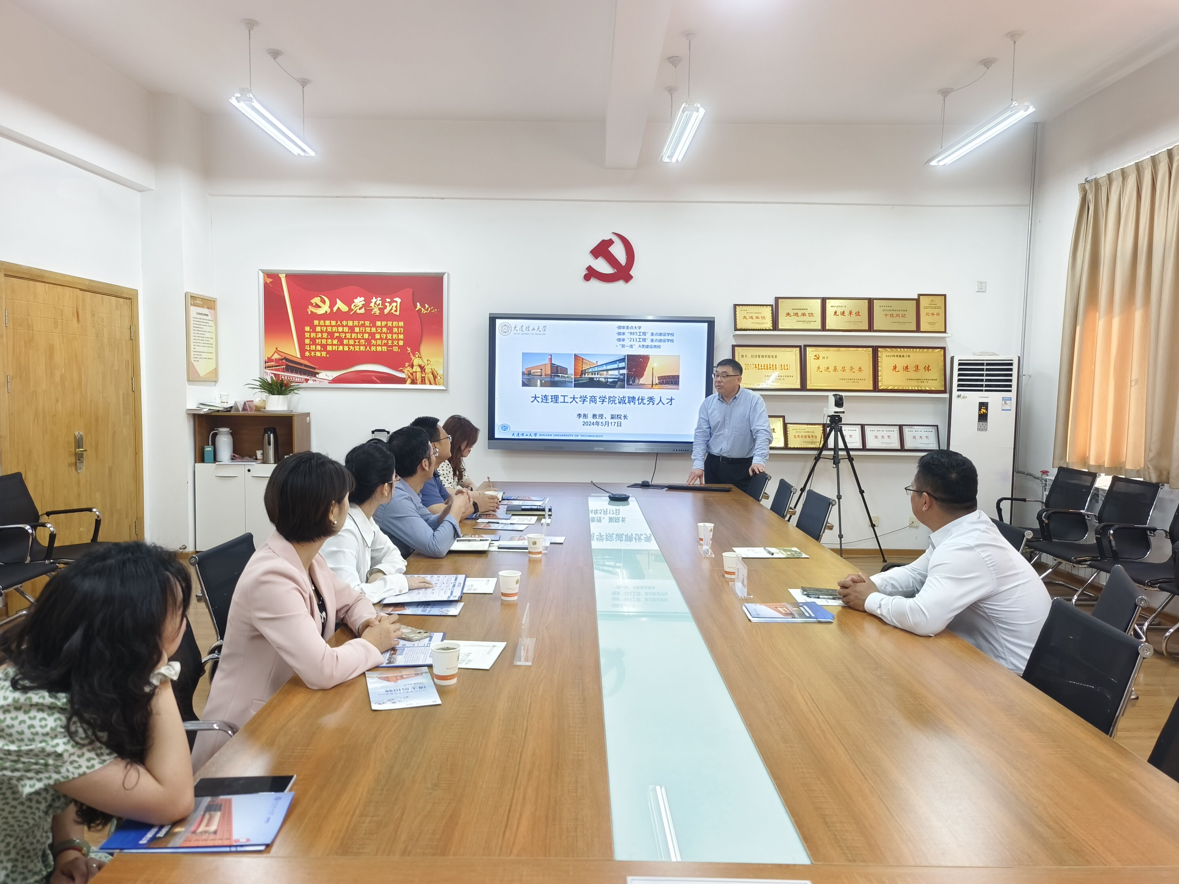 5月16日,大连理工大学商学院副院长李彤、副书记罗利一行来院做人才引进政策宣讲,学院党委副书记张军驰、副院长刘军弟、教师代表樊文平,研究生辅导员雍双渠及多名高年级博士代表参会,会议由张军驰主持。