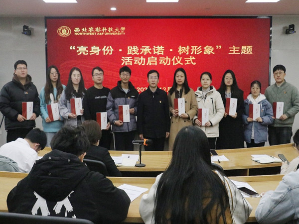 启动仪式上,学工秘书张静宣读了《beat365官网关于在学工干部和学生党员中开展“亮身份·践承诺·树形象”系列主题活动的通知》,从活动开展主题、内容及形式等方面进行安排部署,同时要求全体党员日常佩戴党员徽章,主动亮明身份,积极履行党员义务,增强服务意识。