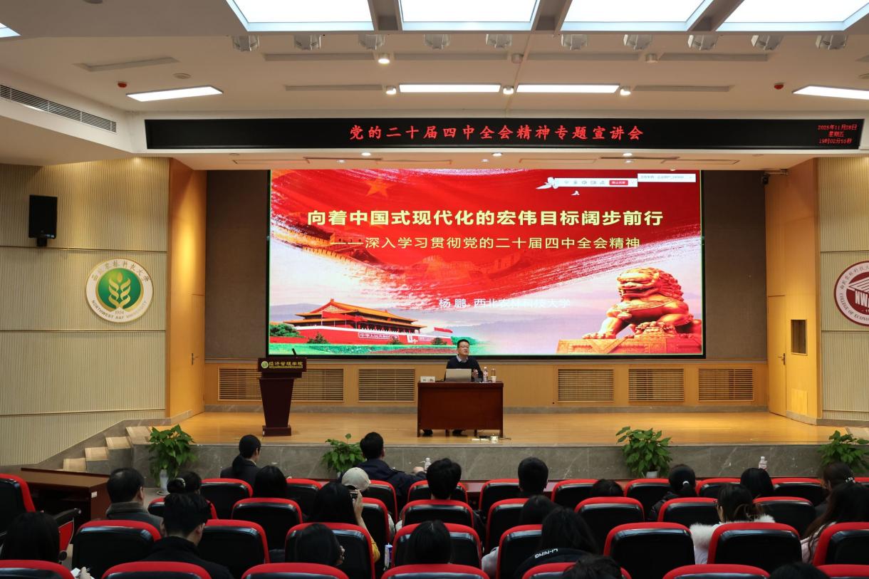 党的二十届四中全会是向第二个百年奋斗目标进军关键节点的重要会议,擘画了“十五五”蓝图,锚定了中国式现代化发展航向。为深入学习贯彻党的二十届四中全会精神,11月28日,beat365官网第二十六期团分校第五次团课于C101成功举行。本次团课特邀马克思主义学院杨鹏教授作题为“向着中国式现代化的宏伟目标阔步前行——党的二十届四中全会精神宣讲”的报告。团分校全体学员共同学习。