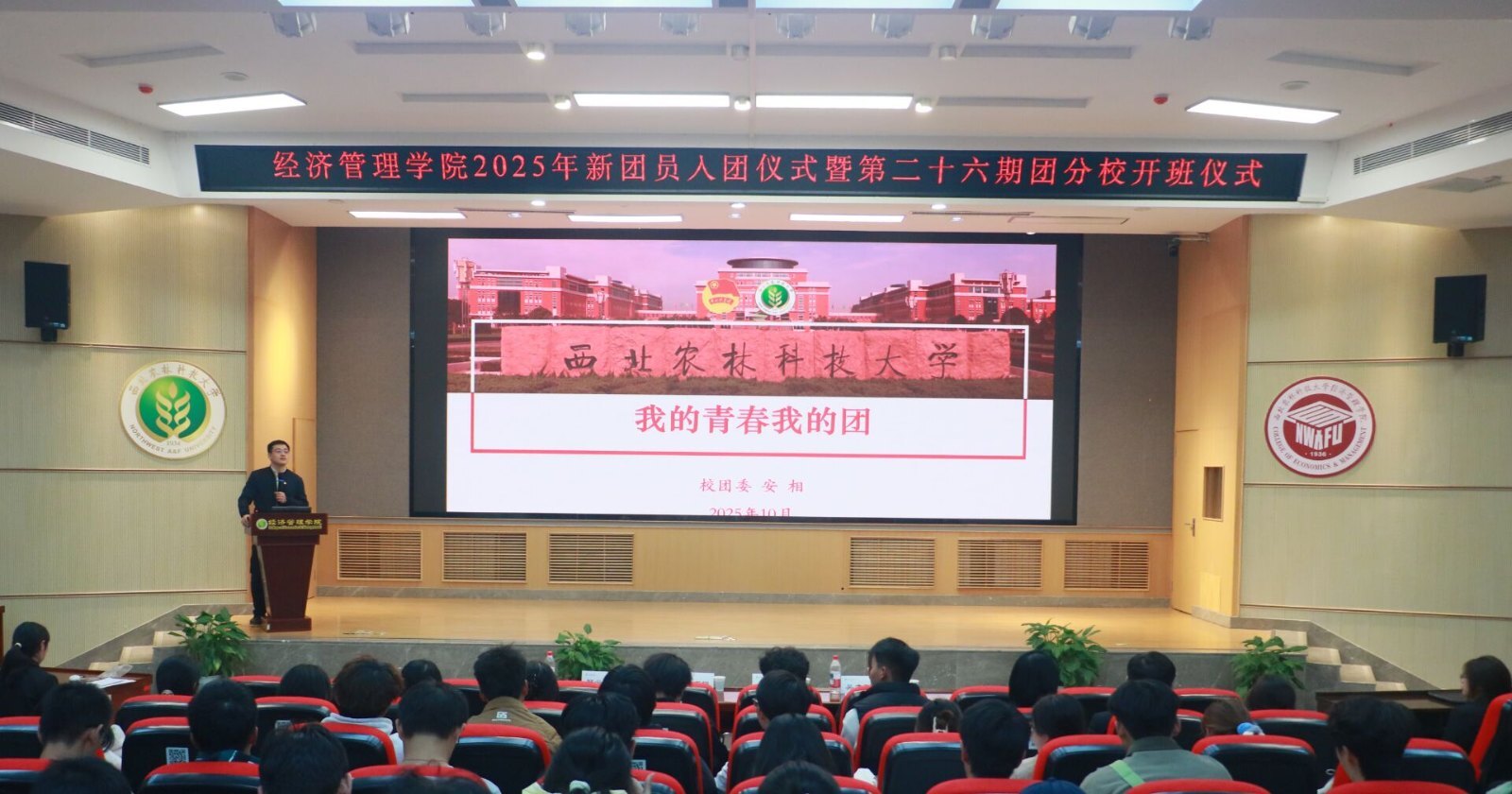 共青团是党的忠实助手和可靠后备军。为切实履行共青团为党育人的根本任务,进一步提升广大团员和入团积极分子的思想理论水平和政治素质,10月28日19:00beat365官网2025年新团员入团仪式暨第二十六期团分校开班仪式于C101成功举行。本次开班仪式由院团委副书记邢云翔主持,校团委副书记安相,院党委副书记胡巧娟,院团委书记吴龙刚及第二十六期团分校全体学员共同参与,并邀请校团委副书记安相作团课第一讲。